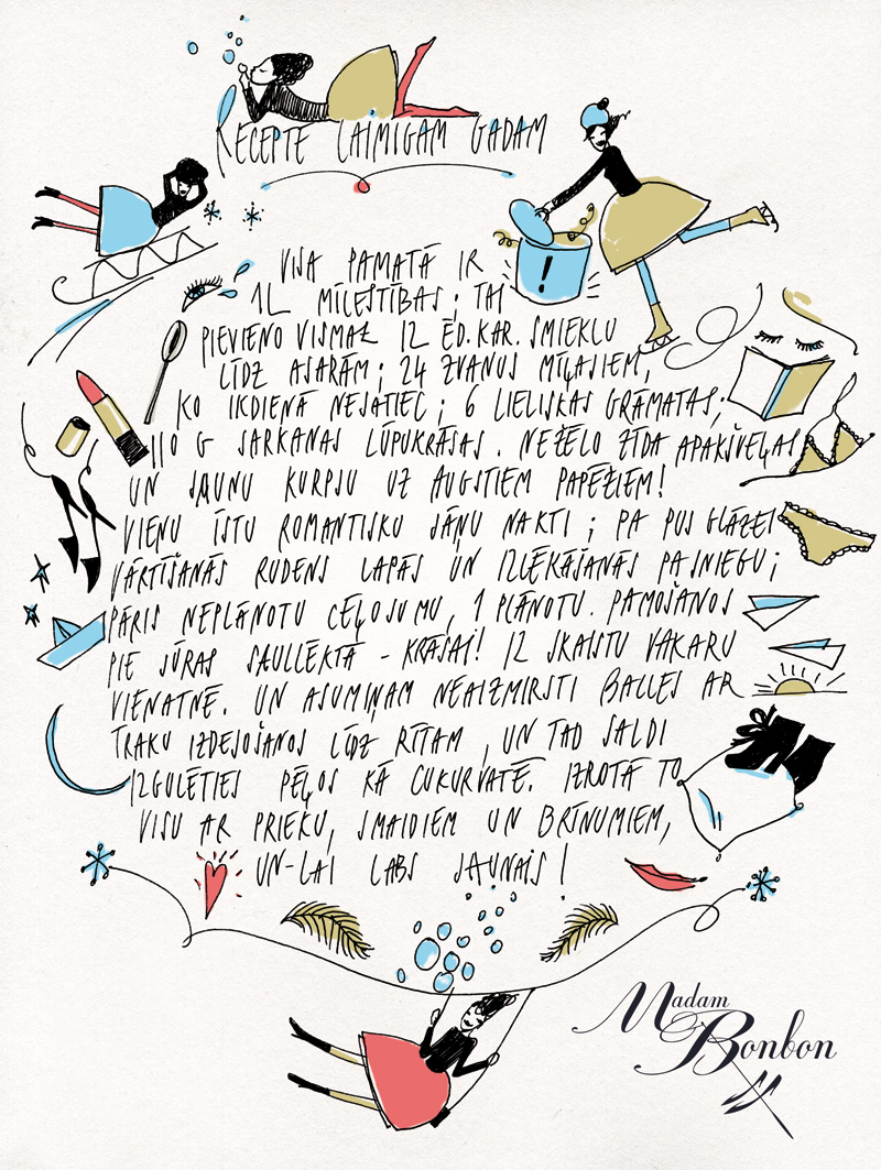 Vēlu Tev tikpat raibu un fantastisku gadu, uz kuru atskatoties, jādomā: “Kā gan es paspēju piedzīvot visus tos brīnišķīgos brīžus un notikumus?”! Mīli, priecājies, ēd šokolādi, lasi labas grāmatas, valkā visskaistākās kurpes un dzīvo!